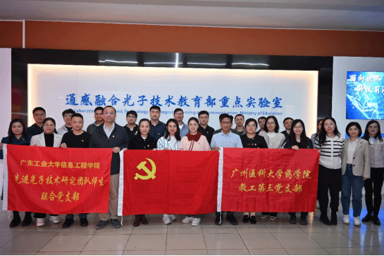 最后,我院教工第三党支部一行参观了广东工业大学“通感融合光子技术教育部重点实验室”,近距离了解了光电成像、智能感知等技术的研发进展及创新成果;双方就“药物微结构的高分辨成像”等具体需求进行了现场对接,为后续合作明确了技术切入点,为科研协作打下良好基础。