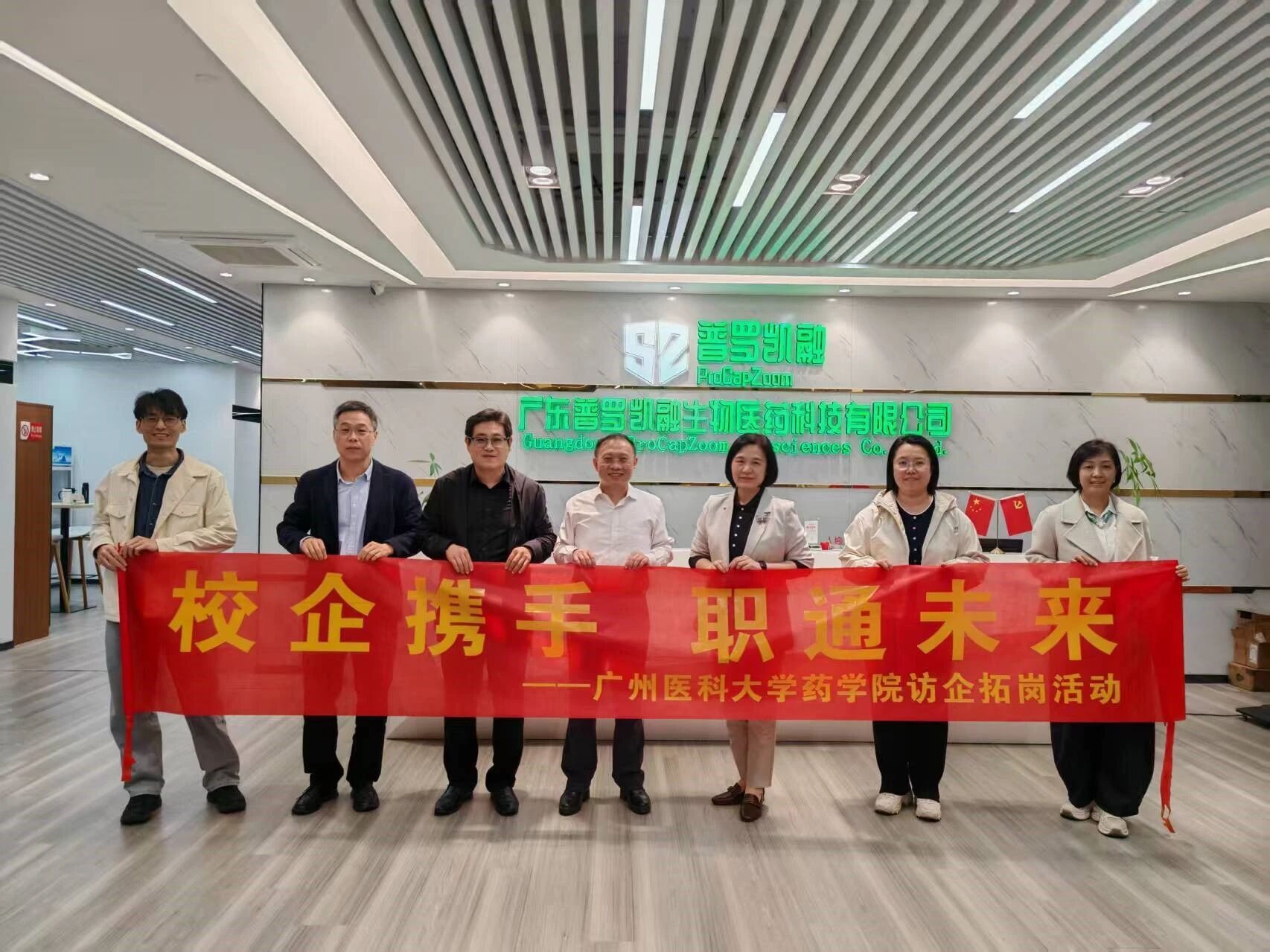 为深化校企协同育人,拓宽毕业生实习就业渠道,推动产教融合高质量发展,2025年12月17日下午,广州医科大学药学院党委吴他凡书记、易伟副院长、罗晓明副书记、学生办刘金艳老师前往广东普罗凯融生物医药科技有限公司开展访企拓岗活动,与普罗凯融公司曾皓宇董事长、李建喜副总经理等进行座谈。